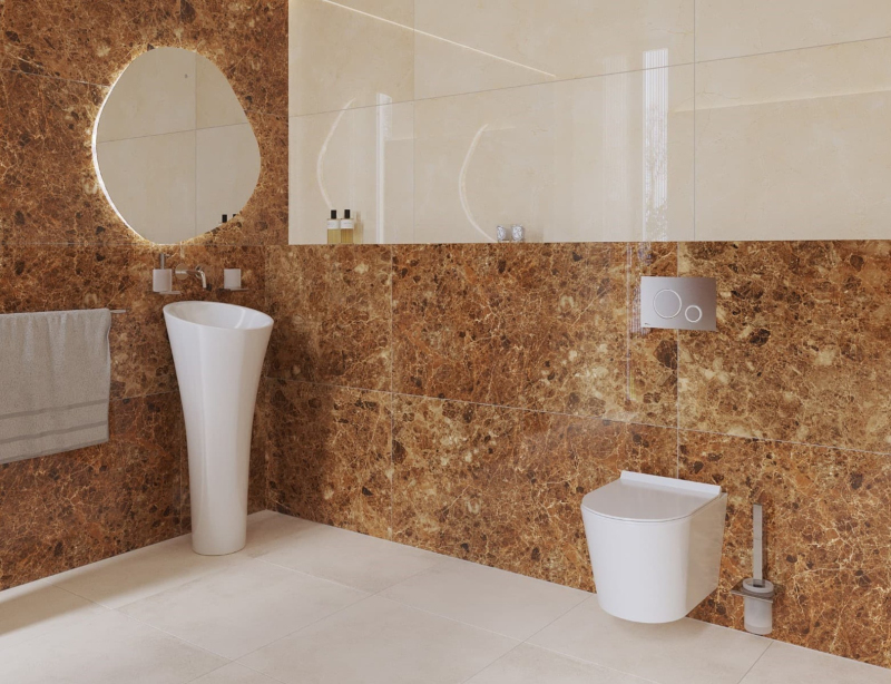 Rektifikované. Mrazuvzdorné. Dlažba vo farebnom prevedení emperador brown av imitácii mramoru o rozmere 60x120 cm a hrúbke 8,5 mm s lešteným povrchom. Vhodné iba do interiéru.