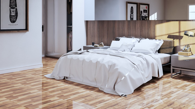 Dlažba vo farebnom prevedení acacia av imitácii dreva o rozmere 60,1x60,1 cm a hrúbke 7,4 mm s lesklým povrchom. Vhodné iba do interiéru. S veľkými a náhodnými odchýlkami v odtieni farieb, štruktúry povrchu a kresby.