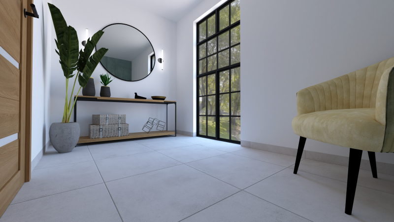 Rektifikované. Mrazuvzdorné. Dlažba vo svetlo šedej farbe av betónovom dizajne o rozmere 59,8x59,8 cm a hrúbke 9 mm s matným povrchom. Vhodné do interiéru aj exteriéru. S veľkými rozdielmi v odtieni farieb, štruktúry povrchu a kresby. Vysoko odolné proti opotrebovaniu. Vhodné do hál hotelov, obchodov a garáže.