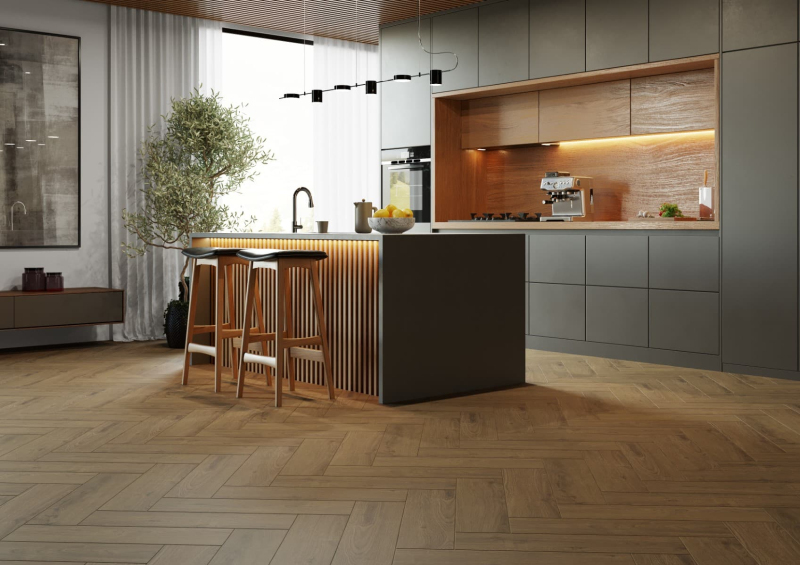 Mrazuvzdorné. Dlažba v hnedej farbe av imitácii dreva a hrúbke 7 mm s matným povrchom. Vhodné do interiéru aj exteriéru. S veľkými a náhodnými odchýlkami v odtieni farieb, štruktúry povrchu a kresby. Vhodné do kuchyne, kancelárií, na balkóny.