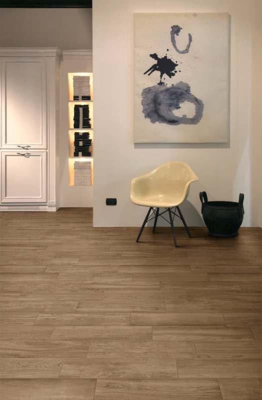 Dlažba vo farebnom prevedení brown av imitácii dreva o rozmere 15x60 cm a hrúbke 8 mm s matným povrchom. Vhodné iba do interiéru. S veľkými rozdielmi odtieňa, textúry a vzoru.