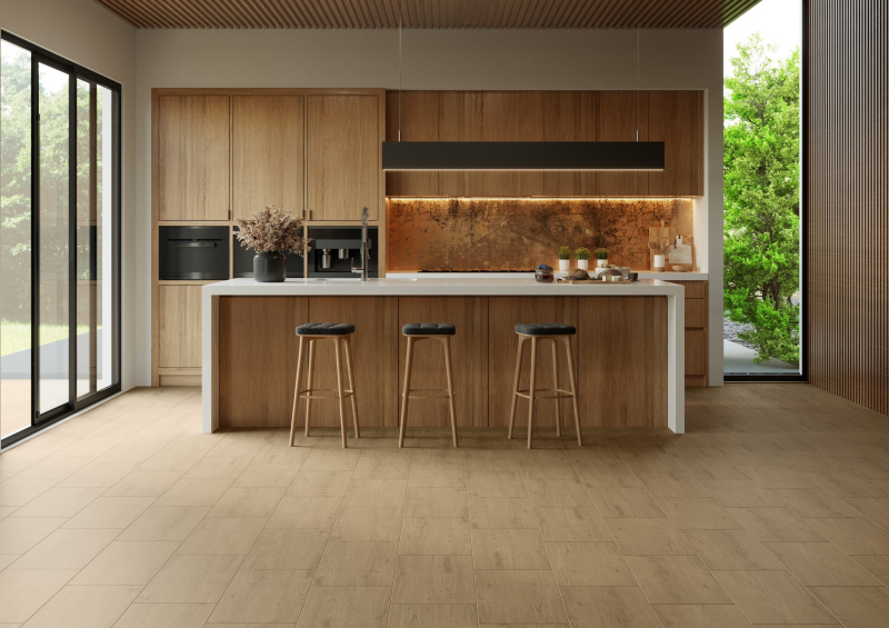 Mrazuvzdorné. Dlažba v béžovej farbe av imitácii dreva a hrúbke 7 mm s matným povrchom. Vhodné do interiéru aj exteriéru. S veľkými a náhodnými odchýlkami v odtieni farieb, štruktúry povrchu a kresby. Vhodné do kuchyne, kancelárií, na balkóny.