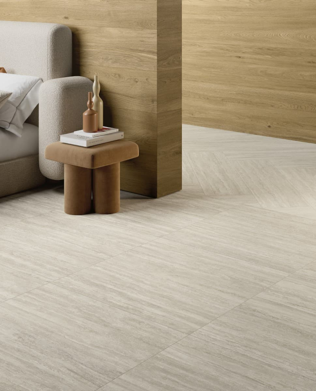 Rektifikované. Mrazuvzdorné. Dlažba vo farbe white av imitácii kameňa s rozmerom 60x60 cm a hrúbkou 8,5 mm s matným povrchom. Vhodné do interiéru aj exteriéru. S malými rozdielmi v odtieni farieb, štruktúry povrchu a kresby. Vysoko odolné proti opotrebovaniu. Vhodné do hál hotelov, obchodov a garáže.