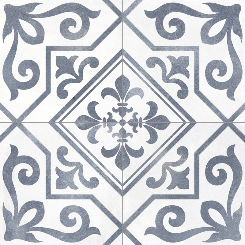 Dlažba v modrej farbe v retro dizajne o rozmere 45,2x45,2 cm a hrúbke 10 mm s matným povrchom. Vhodné do exteriéru aj interiéru. S malými rozdielmi v odtieni farieb, štruktúry povrchu a kresby. Vhodné do kuchyne, kancelárií.