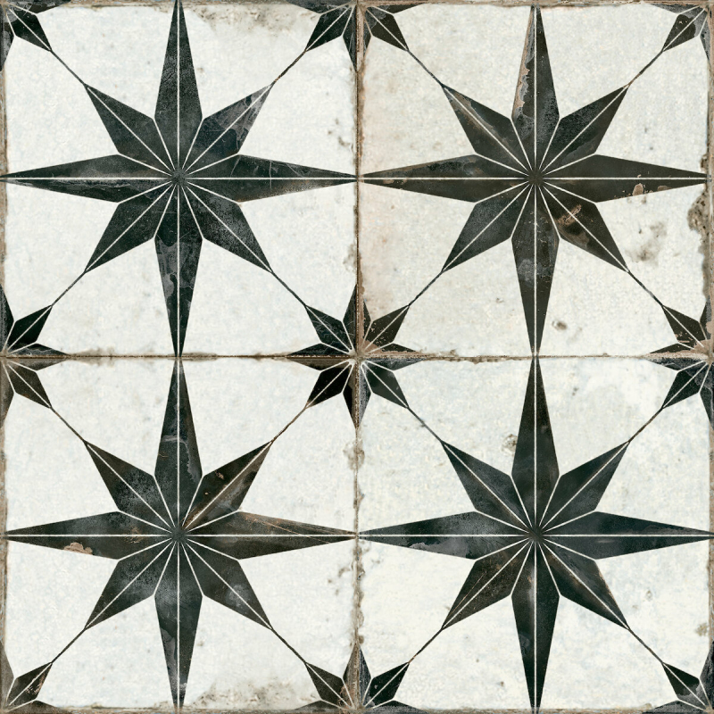 Dlažba v mixe farieb v retro dizajne o rozmere 45x45 cm a hrúbke 9,5 mm s matným povrchom. Vhodné iba do interiéru. S malými rozdielmi v odtieni farieb, štruktúry povrchu a kresby. Vhodné do kuchyne, kancelárií.