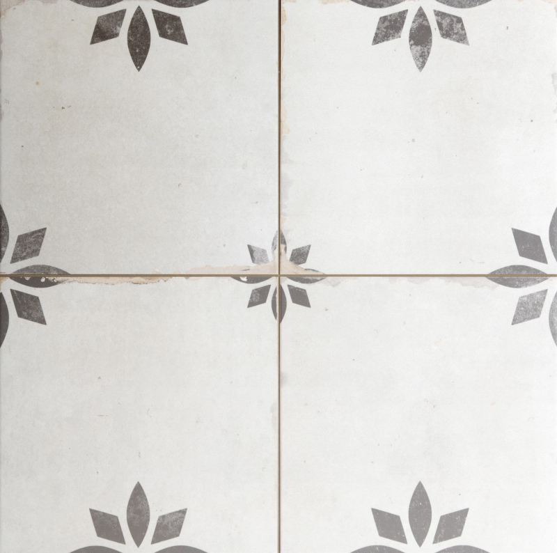 Dlažba v šedej farbe v retro designe o rozmere 45,2x45,2 cm a hrúbke 9,5 mm s matným povrchom. Vhodné iba do interiéru. S malými rozdielmi v odtieni farieb, štruktúry povrchu a kresby. Vhodné do kuchyne, kancelárií.