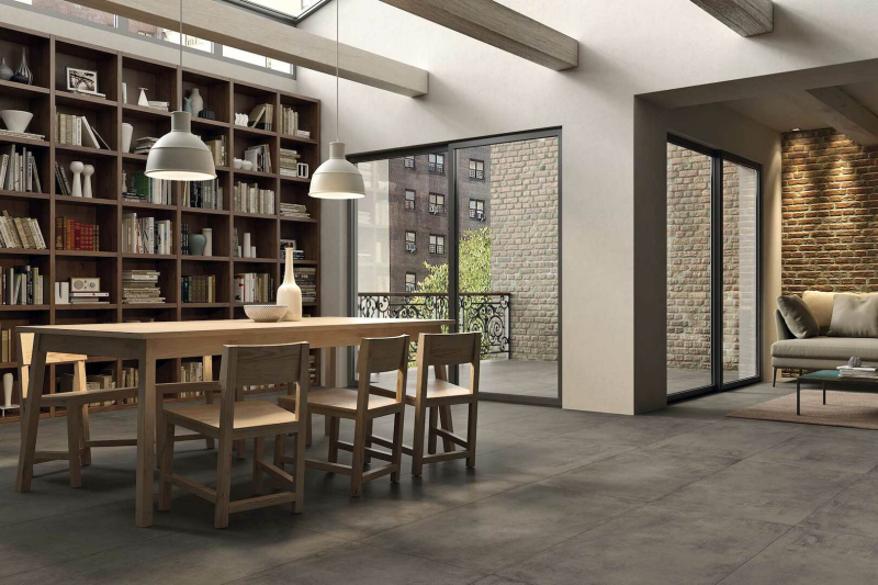 Mrazuvzdorná a rektifikovaná dlažba v šedej farbe v betónovom dizajne o rozmere 59,6x59,6 cm a hrúbke 8 mm s matným povrchom. Vhodné do interiéru aj exteriéru. S veľkými rozdielmi v odtieni farieb, štruktúry povrchu a kresby. Vysoko odolné proti opotrebovaniu. Vhodné do hál hotelov, obchodov a garáže.