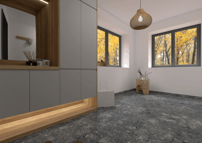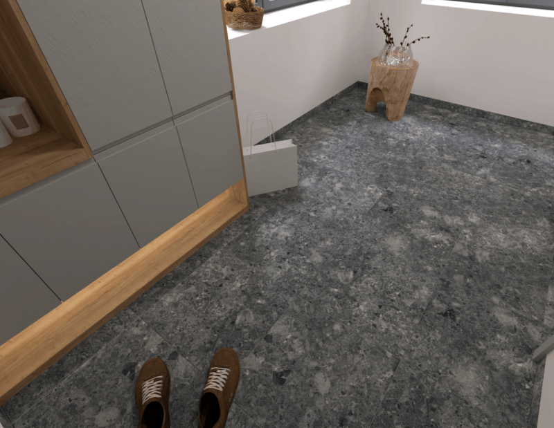 Rektifikované. Mrazuvzdorné. Dlažba v čiernej farbe av imitácii kameňa s rozmerom 59,8x59,8 cm a hrúbkou 9 mm s matným povrchom. Vhodné do interiéru aj exteriéru. S veľkými rozdielmi v odtieni farieb, štruktúry povrchu a kresby.