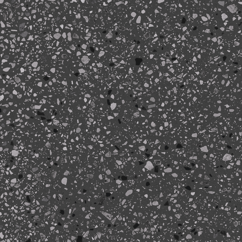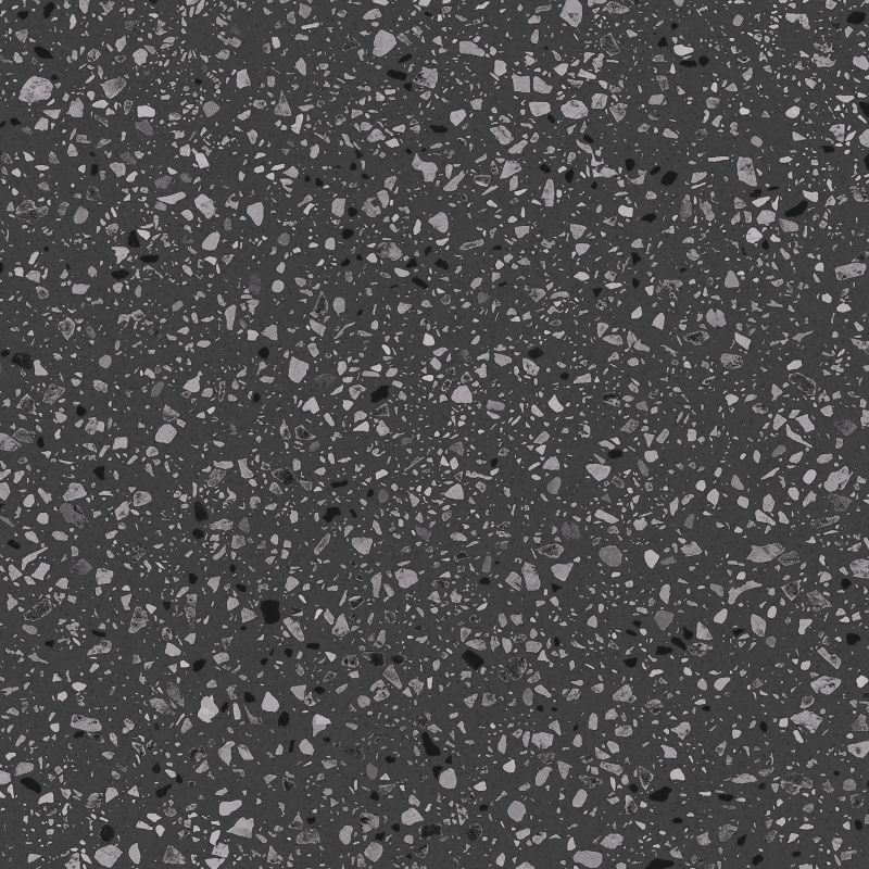 Rektifikované. Mrazuvzdorné. Dlažba v čiernej farbe av terrazzo designe o rozmere 59,8x59,8 cm a hrúbke 9 mm s povrchom v prevedení lesk/mat. Vhodné do interiéru aj exteriéru. S veľkými rozdielmi v odtieni farieb, štruktúry povrchu a kresby. Vhodné do kuchyne, kancelárií, na balkóny.