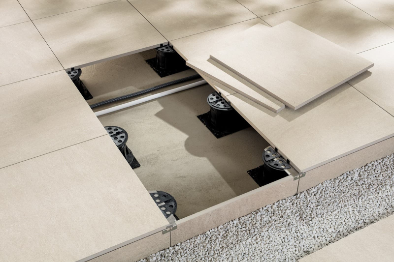 Mrazuvzdorná a rektifikovaná dlažba v béžovej farbe v imitácii kameňa o rozmere 59,8x59,8 cm a hrúbke 20 mm s matným povrchom. Vhodné do exteriéru, určené predovšetkým na inštaláciu na terče, do stierku či trávnika, prípadne je možné aj lepiť cementovými lepidlami na to určenými. S veľkými rozdielmi v odtieni farieb, štruktúry povrchu a kresby. Vysoko odolné proti opotrebovaniu. Vhodné na terasy, balkón, chodníky alebo ako dlažba k bazénu.