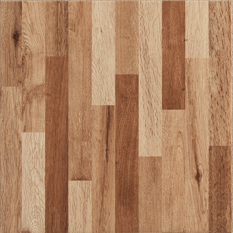 Dlažba v hnedej farbe v imitácii dreva o rozmere 45x45 cm a hrúbke 9,1 mm s pololesklým povrchom. Vhodné iba do interiéru. S veľkými rozdielmi v odtieni farieb, štruktúry povrchu a kresby.