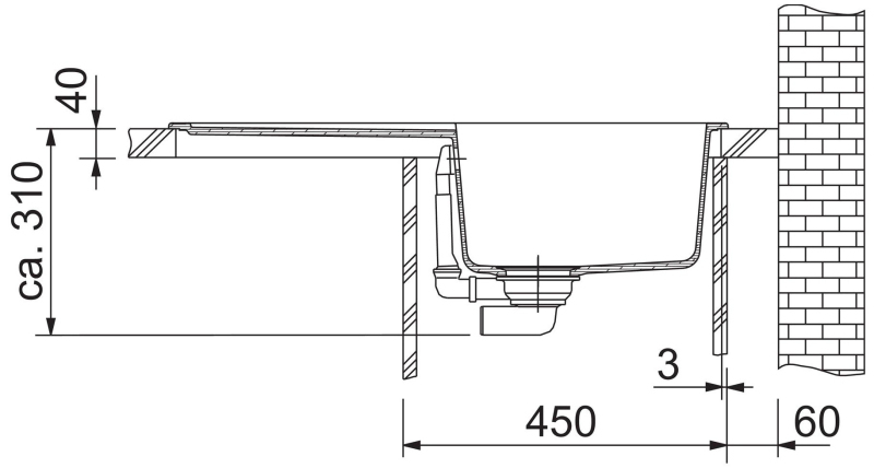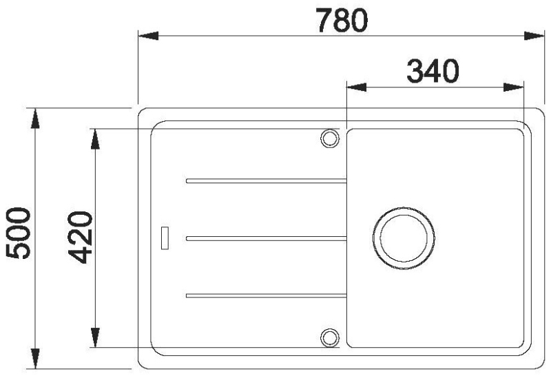 Granitový jednodřez s odkapávačem černý s montáží na pracovní desku o rozměru 78x50 cm a hloubkou 20 cm. Vhodný pro montáž do skříňky o šířce 45 cm.