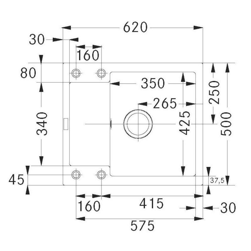 Granitový jednodrez s odkvapkávačom vo farbe biely ľad s montážou na pracovnú dosku o rozmere 62x50 cm a hĺbkou 20 cm. Vhodný na montáž do skrinky so šírkou 45 cm.
