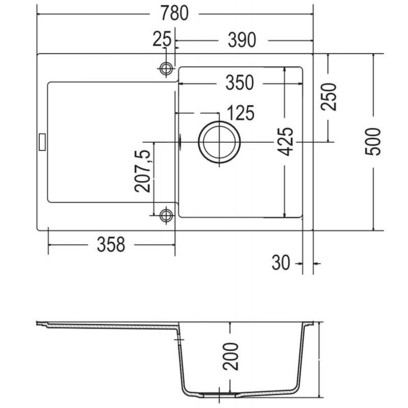 Granitový jednodřez s odkapávačem v barvě sahara s montáží na pracovní desku o rozměru 78x50 cm a hloubkou 20 cm. Vhodný pro montáž do skříňky o šířce 45 cm.