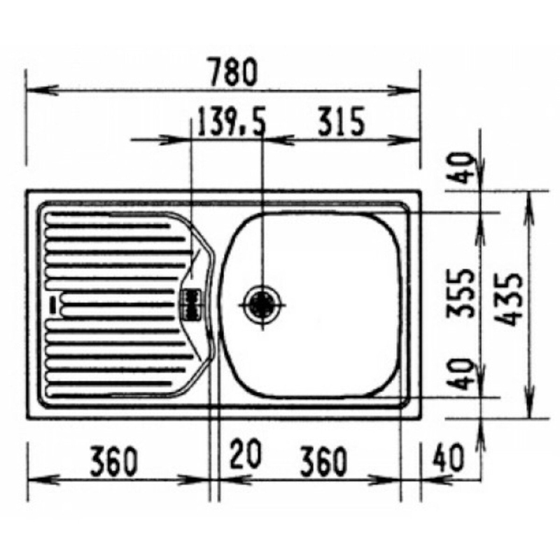 Nerezový jednodřez s odkapávačem s montáží na pracovní desku o rozměru 78x43,5 cm a hloubkou 14 cm. Vhodný pro montáž do skříňky o šířce 45 cm.