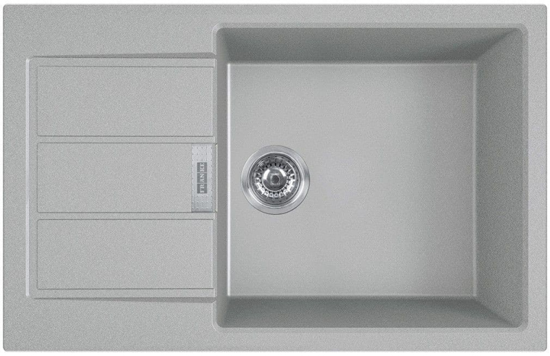 Tectonite drez s odkvapom, prevedenie Šedá, otočný, rozmer 78x 50 cm, horná montáž, minimálne 60 cm skrinka. Súčasťou drezu je kompletné príslušenstvo na montáž. (výpusť, sifón, príchytky atď.) Nie je potrebné nič dokupovať.