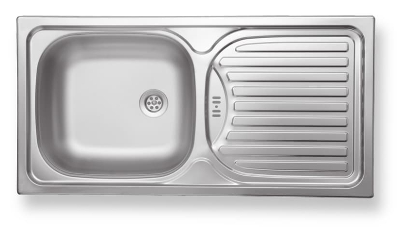 Nerezový jednodřez s odkapávačem s montáží na pracovní desku o rozměru 86x43,5 cm a hloubkou 15 cm.