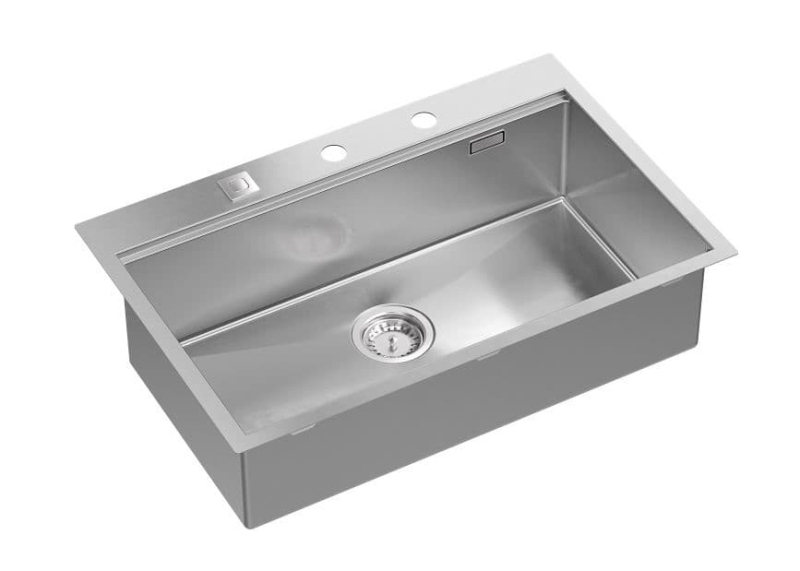Nerezový jednodřez s montáží na pracovní desku o rozměru 76 x 49 cm a hloubkou 21 cm. Vhodný pro montáž do skříňky o šířce 80 cm.