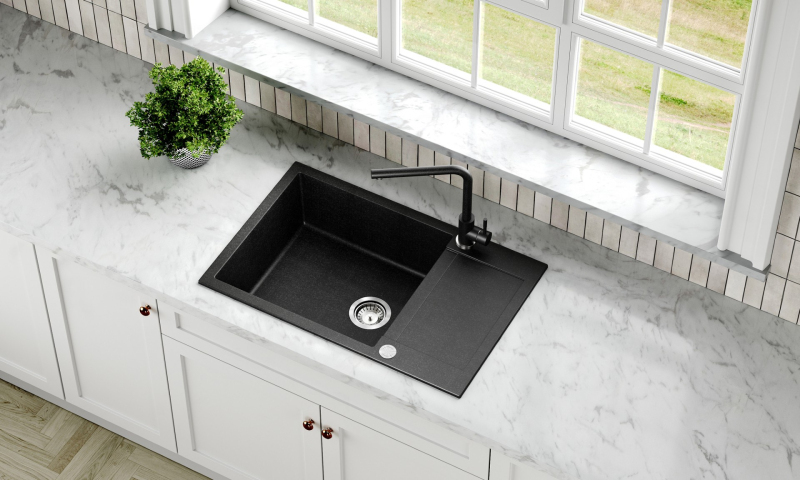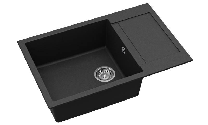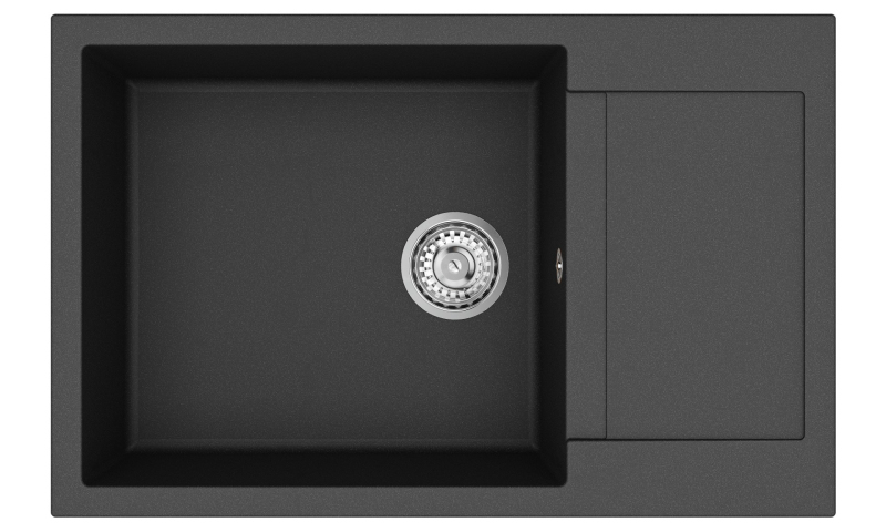Granitový jednodrez s odkvapkávačom čierny s montážou na pracovnú dosku o rozmere 78x50 cm a hĺbkou 20 cm. Vhodný na montáž do skrinky so šírkou 60 cm.