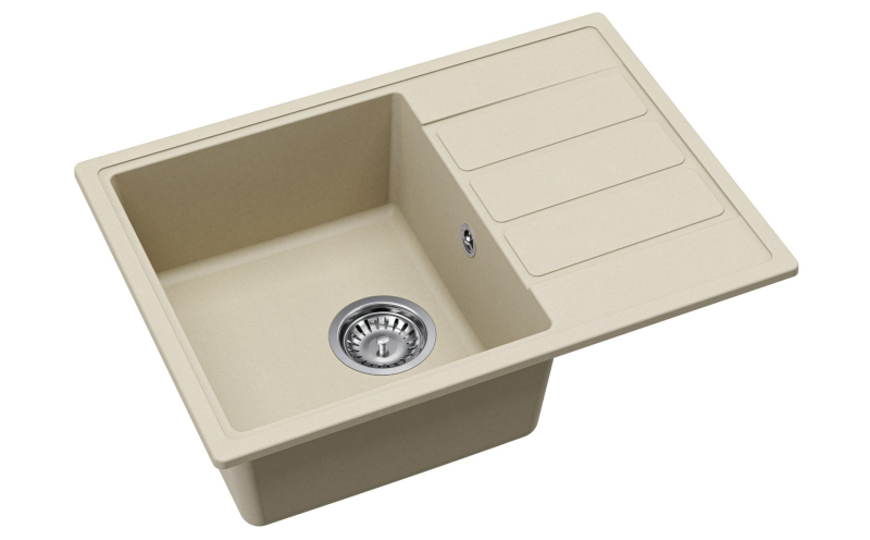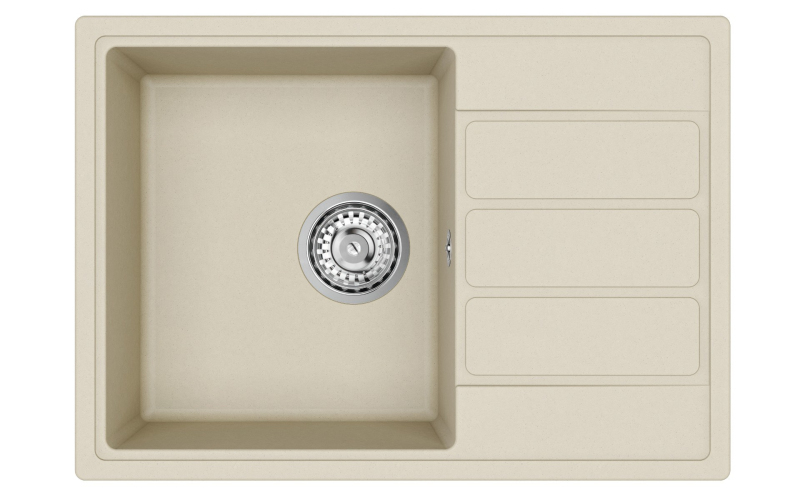 Granitový jednodrez s odkvapkávačom jazmínový s montážou na pracovnú dosku o rozmere 62x44 cm a hĺbkou 17 cm. Vhodný na montáž do skrinky so šírkou 45 cm.
