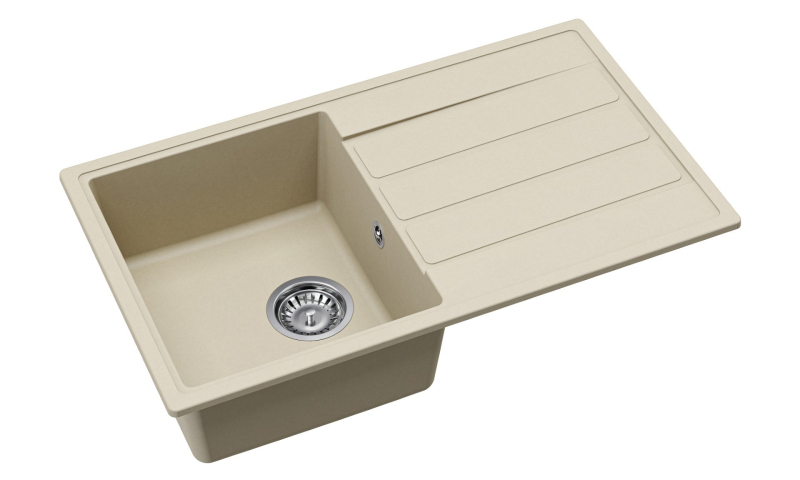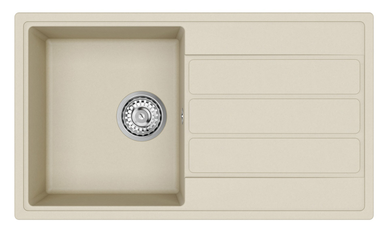 Granitový jednodrez s odkvapkávačom jazmínový s montážou na pracovnú dosku o rozmere 76x44 cm a hĺbkou 17 cm. Vhodný na montáž do skrinky so šírkou 45 cm.
