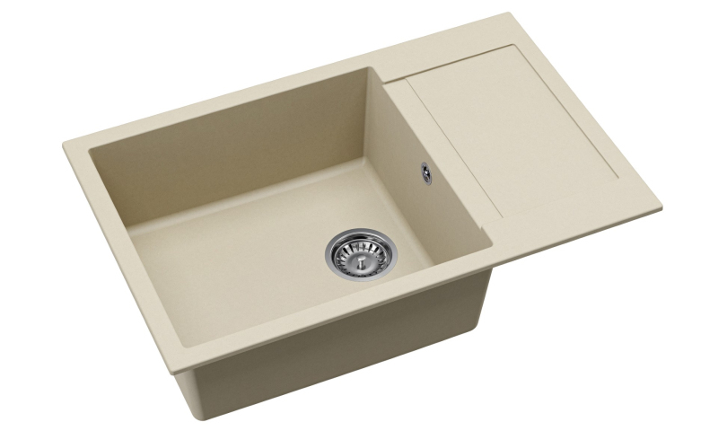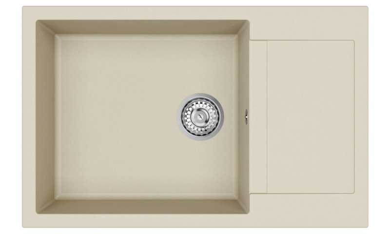 Granitový jednodrez s odkvapkávačom jazmínový s montážou na pracovnú dosku o rozmere 78x50 cm a hĺbkou 20 cm. Vhodný na montáž do skrinky so šírkou 60 cm.