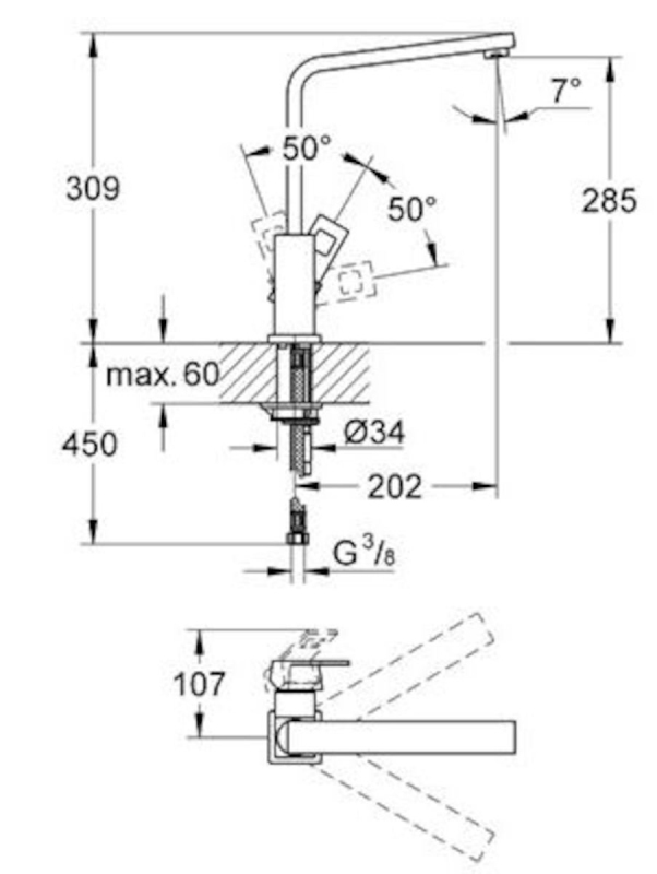 Drezová batéria Grohe Eurocube s otočným ramienkom chróm 31255000