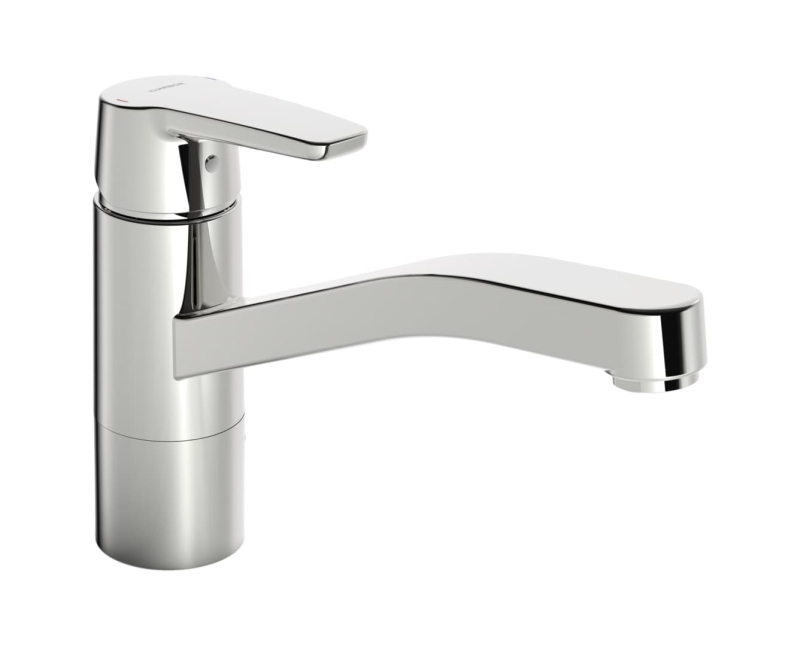 Páková stojanková drezová batéria s otočným ramienkom. V chrómovom prevedení. Prietok batérie je 12 litrov/minútu. Výška batérie je 16,8 cm. Ramienko je vo výške 13 cm.