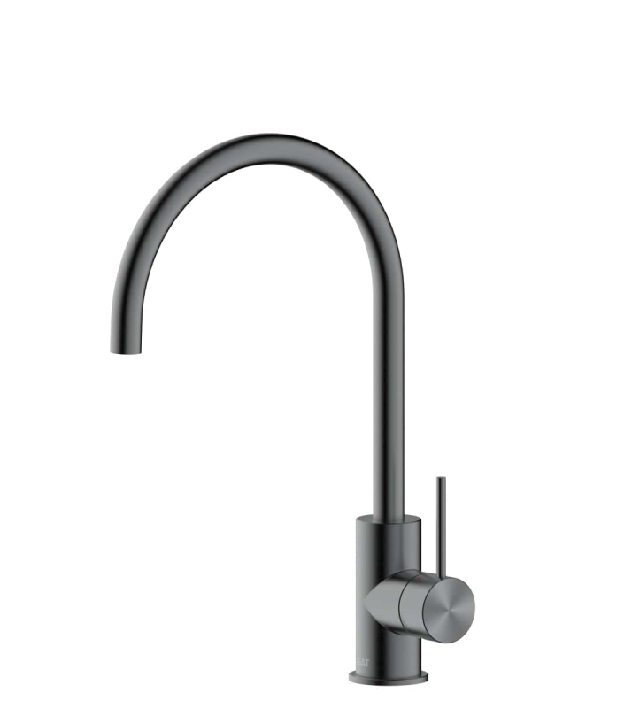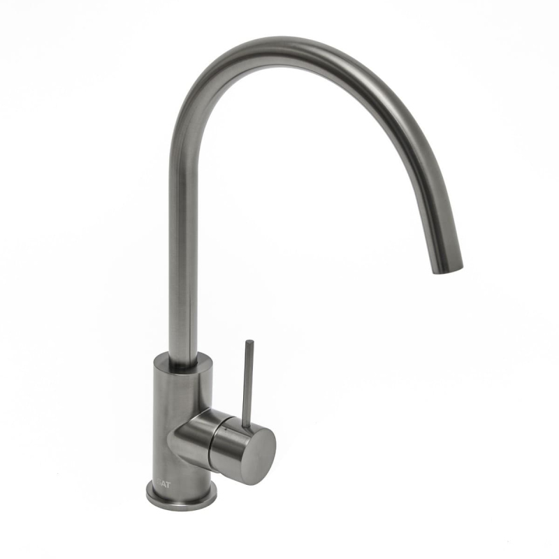 Páková stojanková drezová batéria s otočným ramienkom. V okrúhlom dizajne vo farebnom prevedení brúsený gun metal. Výška batérie je 36,3 cm. Ramienko je vo výške 23,2 cm. S matným povrchom