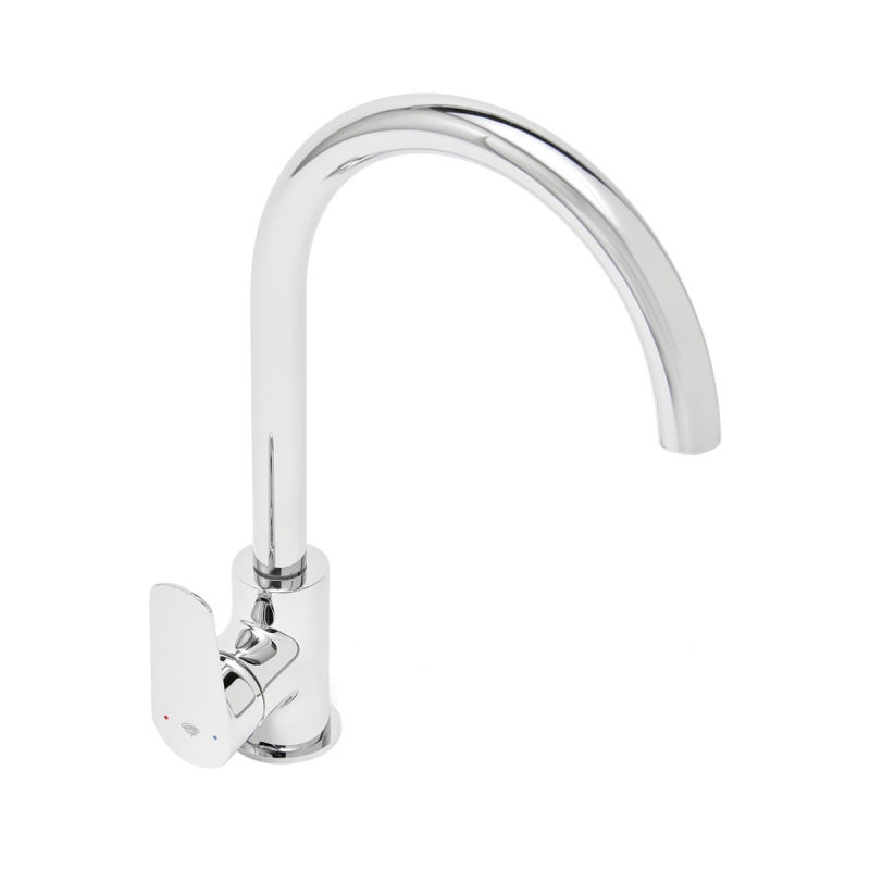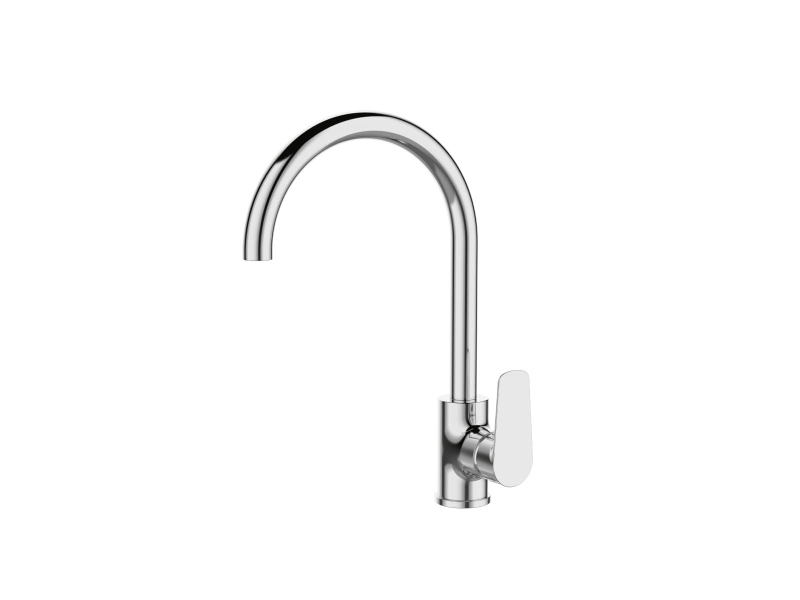 Páková stojanková drezová batéria s otočným ramienkom v chrómovom prevedení. Vo farebnom prevedení lesk.