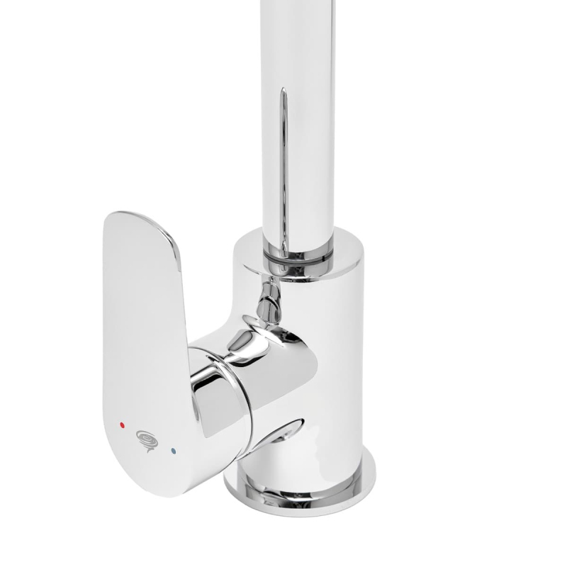Páková stojanková drezová batéria s otočným ramienkom v chrómovom prevedení. Vo farebnom prevedení lesk.