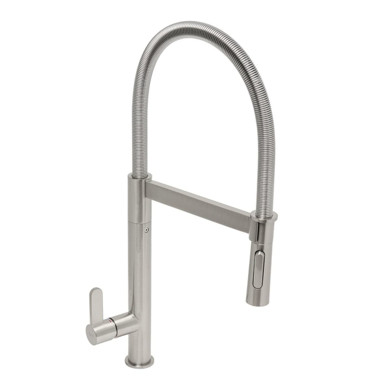 Páková stojanková drezová batéria s otočným ramienkom, 2 prúdy v nerezovom prevedení. Výška batérie je 54 cm. Ramienko je vo výške 17,8 cm. S matným povrchom