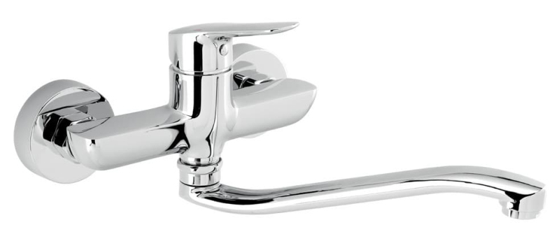Páková nástenná drezová - umývadlová batéria s otočným ramienkom v chrómovom prevedení. Rozteč batérie 150 mm. Vo farebnom prevedení lesk.