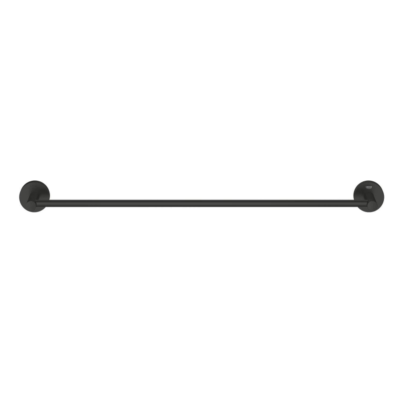 Držiak uterákov vo farebnom prevedení čierna mat. Šírka tohto kúpeľňového doplnku od značky Grohe je 65,4 cm a je vyrobený z materiálu kov. Montáž lepením aj vŕtaním.