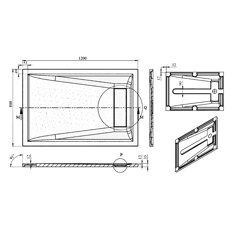 ELEA sprchová vanička liaty mramor, 120x80cm, biela PEL12080 55326