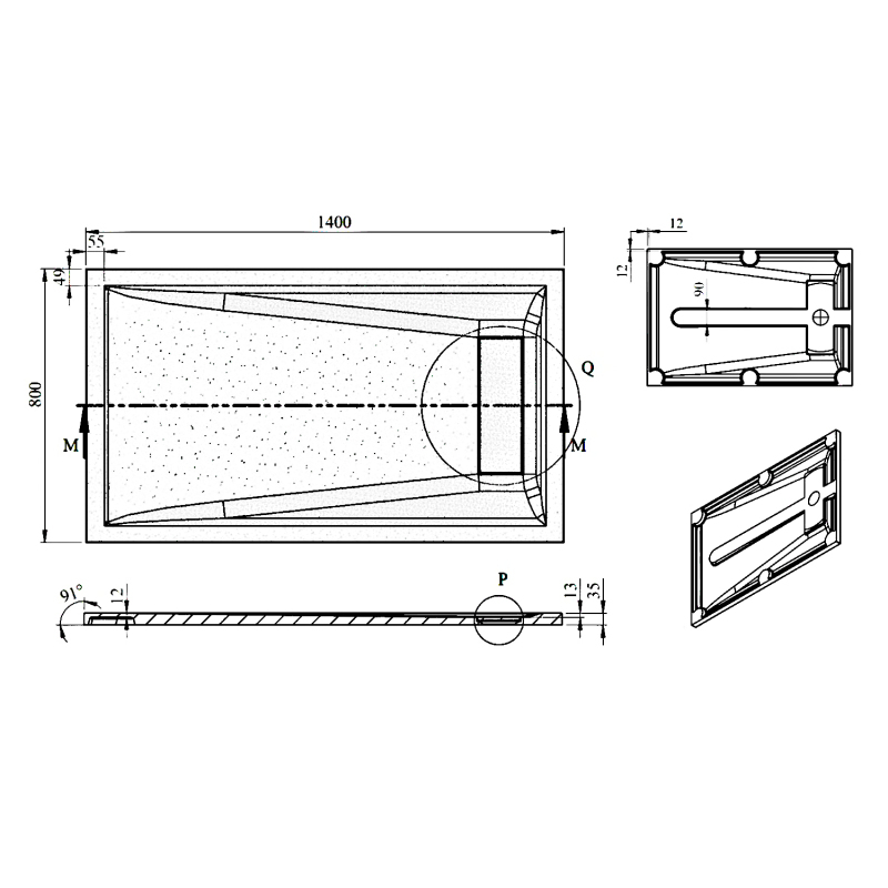 ELEA sprchová vanička liaty mramor, 140x80cm, biela PEL14080 55327
