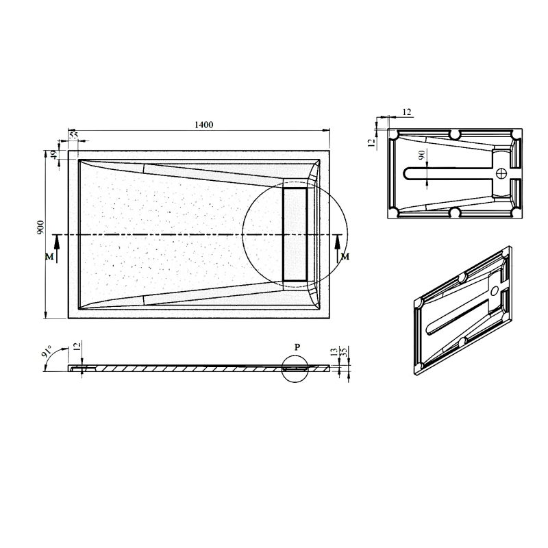 ELEA sprchová vanička liaty mramor, 140x90cm, biela PEL14090 55329