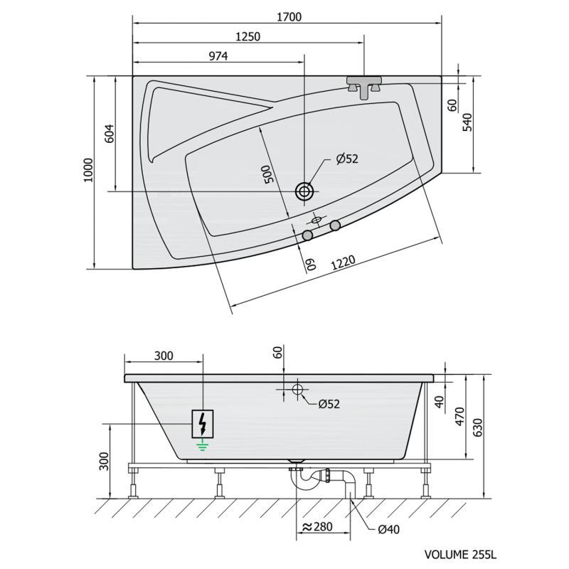 EVIA L hydromasážna vaňa, 170x100x47cm, Attraction Hydro-Air, chróm 56959