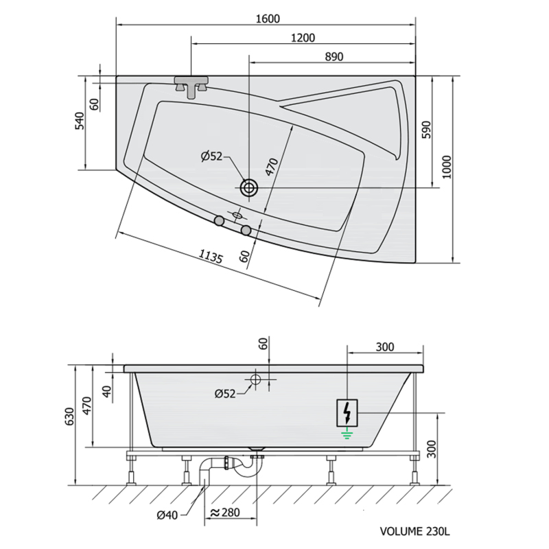 EVIA R hydromasážna vaňa, 160x100x47cm, Attraction Hydro-Air, chróm 56953