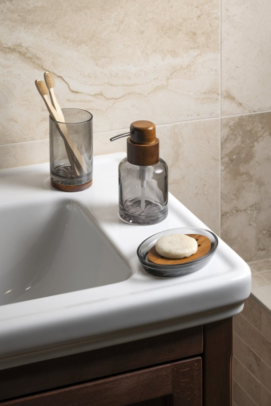 FIGO dávkovač mydla na postavenie 300ml, dymové sklo/drevo 8387 58688