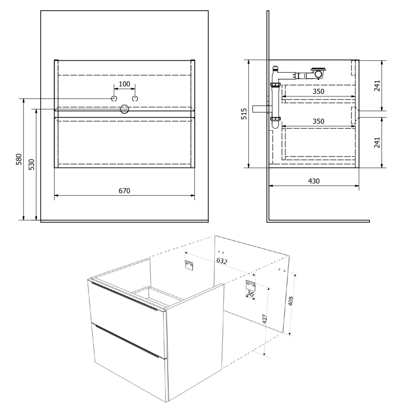 - Možnost instalace s nábytkovým umyvadlem nebo s Rockstone deskou a umyvadlem na desku.