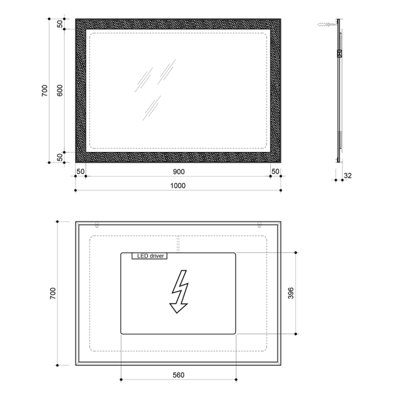 FLUT zrkadlo s LED podsvietením 1000x700mm, biela FT100