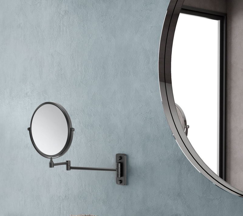 GAIA kozmetické zrkadlo závesné, Ø 180mm, obojstranné, čierna mat