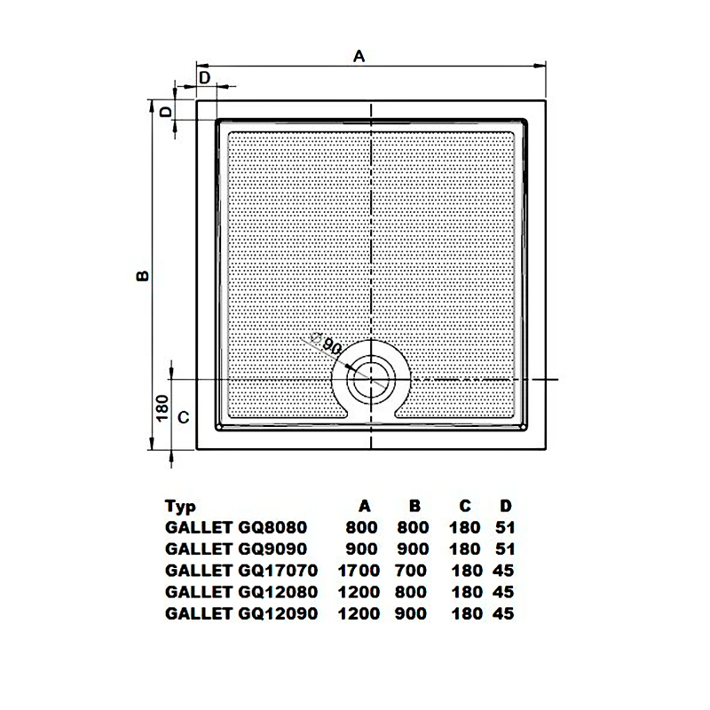 GALLET sprchová vanička z liateho mramoru, štvorec 80x80cm GQ8080 57422