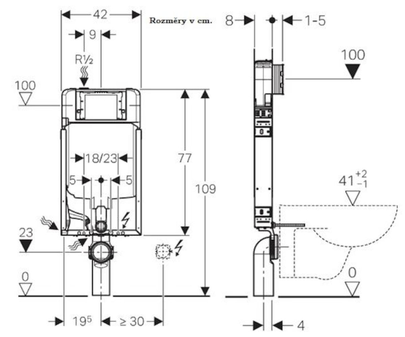 GEBERIT kombifix 109cm, SIGMA 8cm 110.790.00.1