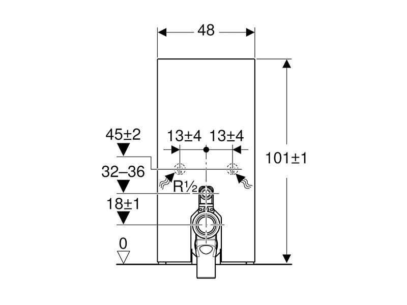 - Pre stojace WC s odpadovým kolenom P as výškou prívodu splachovacej vody 32–36 cm od podlahy (EN 33)