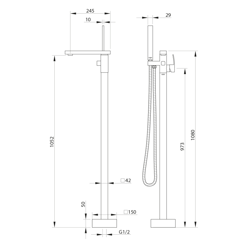 GINKO vaňová batéria s pripojením do podlahy, chróm