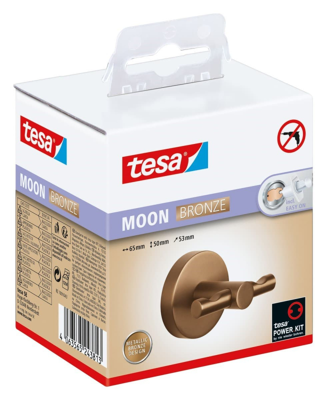 Háček v bronzové barvě. Montáž bez nutnosti vrtání, pouze lepením.