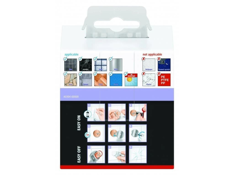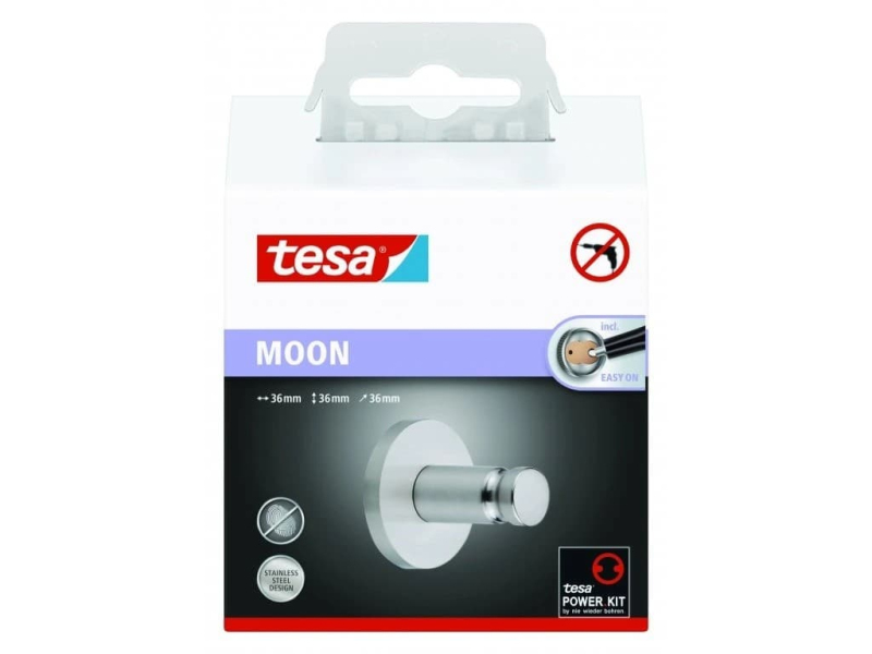 Moderní háček na ručník tesa® Moon nabízí vzhled nerezové oceli, který je rovněž voděodolný a má úpravu proti otiskům prstů. Jeho atraktivní zaoblené křivky se hodí pro jakýkoli koupelnový styl. Váš ručník vždy dokonale uschne, a to bez ohledu na jeho velikost. Háček se připevňuje bez vrtání, takže se nepoškodí žádné povrchy. Namísto toho se používá lepidlo, které k dosažení maximální pevnosti vyžaduje 12 hodin doby zasychání. Přesto ho lze rovněž snadno a kdykoli demontovat. Háček na koupací plášť lze navíc snadno připevnit na jiném místě s novým adaptérem BK73.