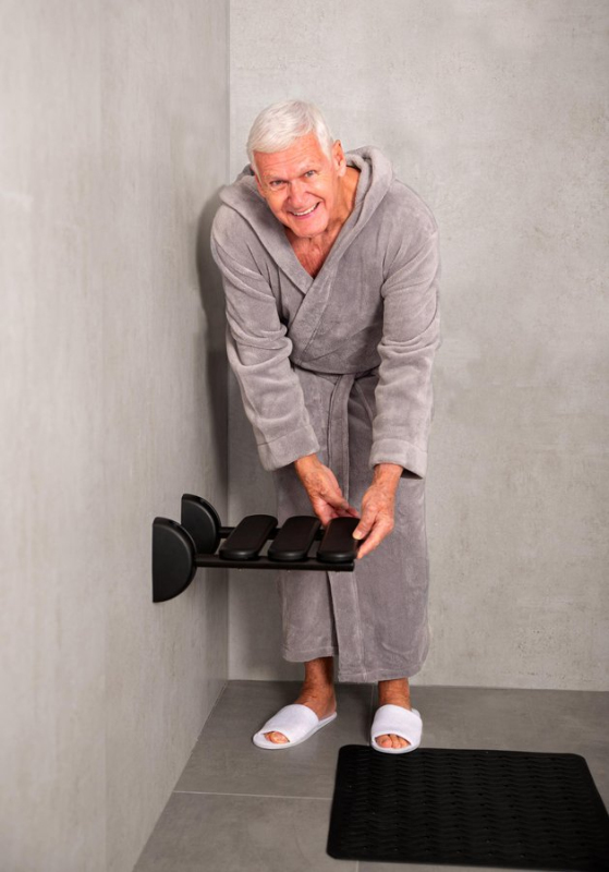 HANDICAP sklopné sedátko do sprchovacieho kúta, 36x25cm, čierna